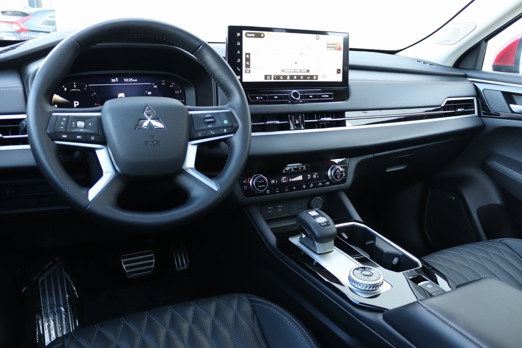 Certified Pre-Owned 2025 Mitsubishi Outlander SEL finished in a stunning Diamond Red exterior with a black leather interior that delivers both style and comfort. This SUV is packed with premium features, including a heated steering wheel, ventilated and heated front seats, and heated rear seats to keep everyone comfortable year-round. Enjoy personalized comfort with three-zone automatic climate control and memory seats, while the power liftgate adds everyday convenience. Additional highlights include an auto-dimming rearview mirror, seamless smartphone integration with Apple CarPlay and Android Auto, and many more advanced features designed to elevate every drive. The 2025 Outlander SEL offers modern technology, refined comfort, and impressive versatility in one exceptional package.